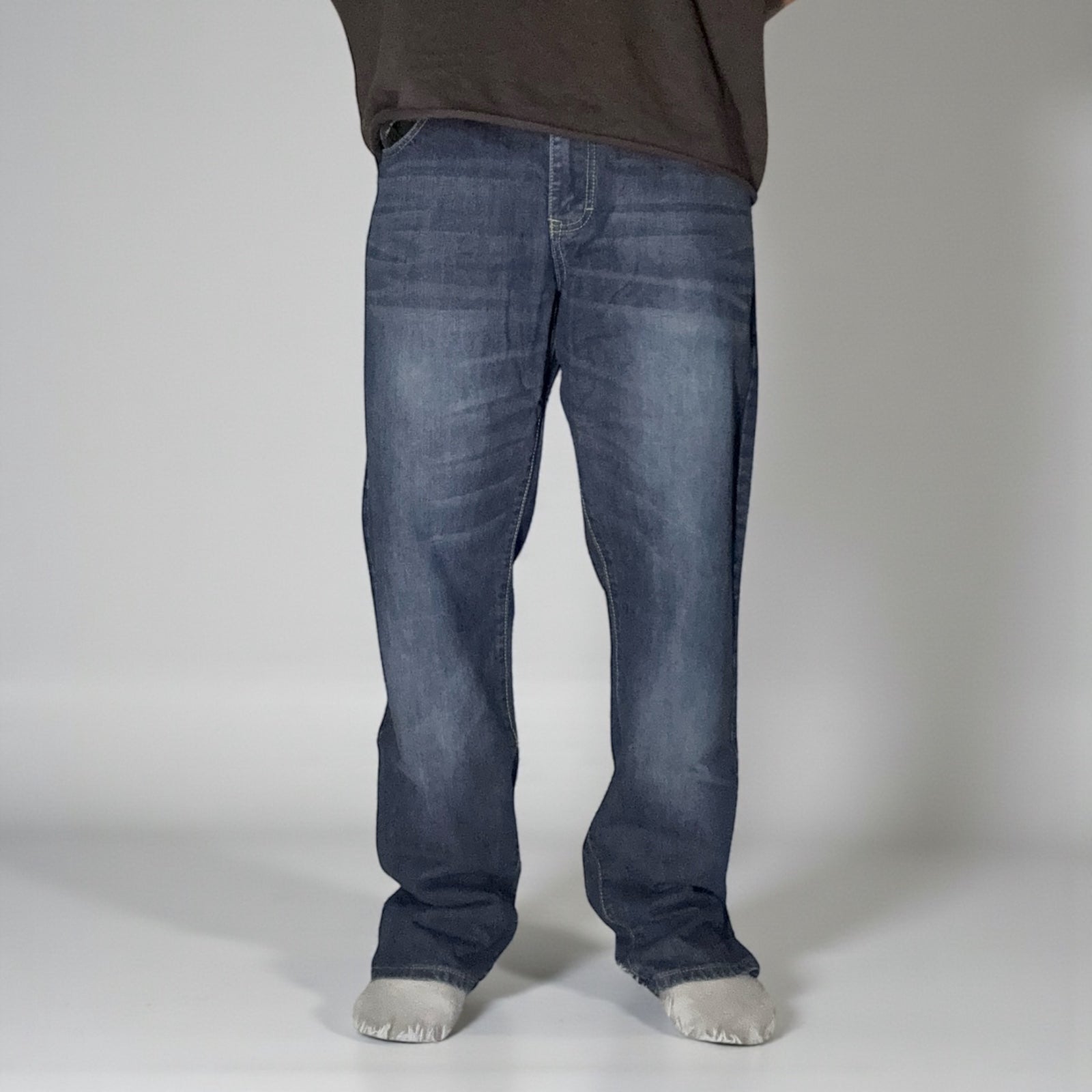 Pièce emblématique de l’ère Y2K streetwear, ce jean Ecko Unltd. offre un look authentique et brut avec sa coupe Slim Straight et son denim délavé.