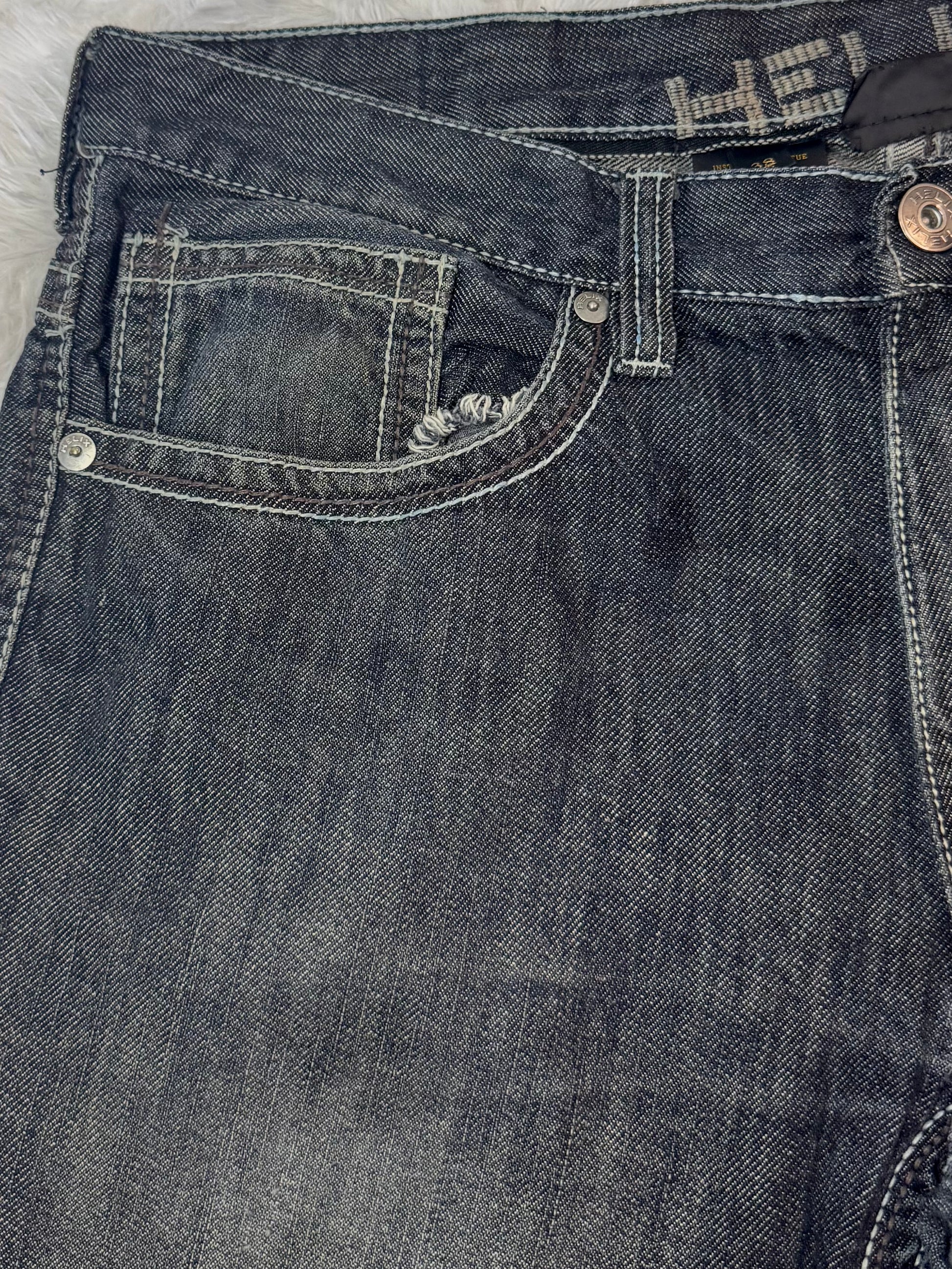 Authentique jean Helix vintage au fit large et coupe bootcut, emblématique du style streetwear des années 2000.